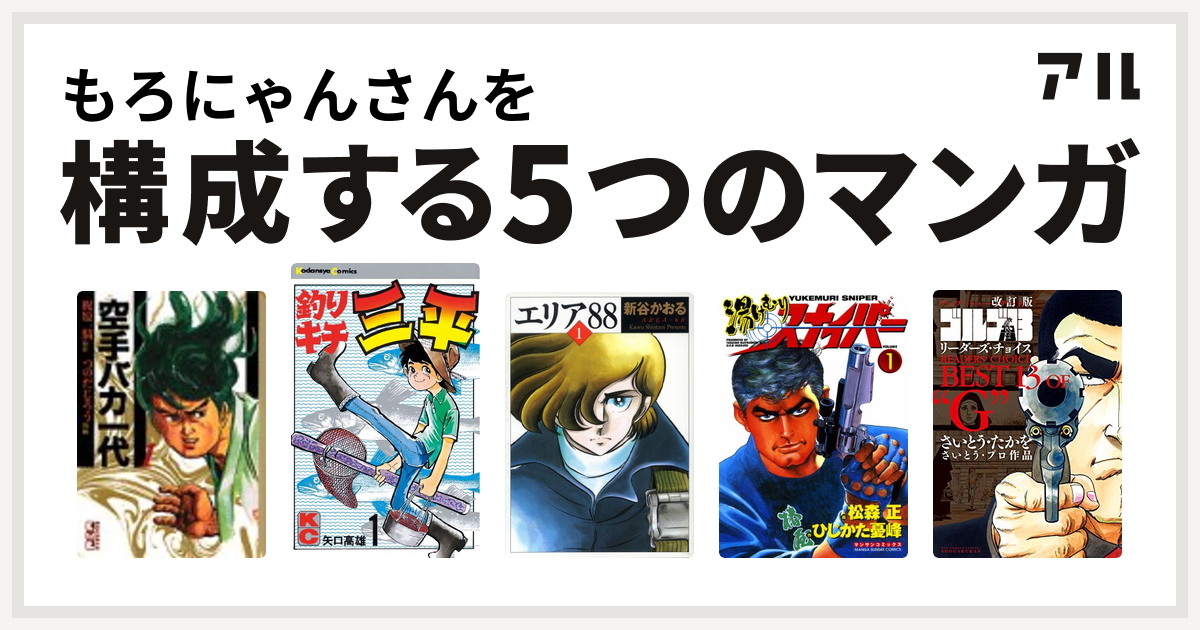 もろにゃんさんを構成するマンガは空手バカ一代 釣りキチ三平 エリア 湯けむりスナイパー 改訂版 ゴルゴ13 リーダーズ チョイス 私を構成する5つのマンガ アル